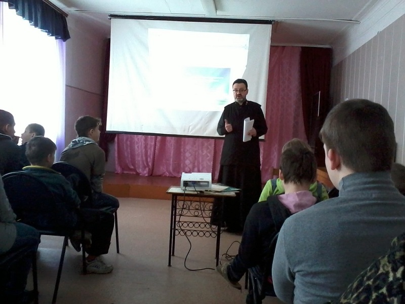 В канун Вербного воскресенья, 12 апреля, в коррекционной школе г. Нелидово состоялась встреча с клириком церкви Балыкинской иконы Божией Матери протоиереем Сергием Малышевым.