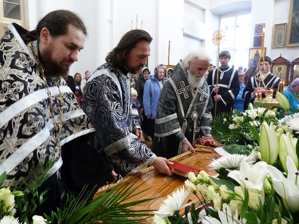 В этот день в Кафедральном Соборе Владыка Адриан совершил службу с выносом Плащаницы в воспоминание о снятии с креста тела Христова.