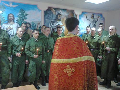 Солдаты молились с красными свечами, зажженными от Благодатного огня, который сошел в Иерусалиме у Гроба Господня в Великую Субботу.