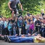 Почти полтора часа длилось церемония чествования выпускников-медалистов, а их, ни много ни мало в этом году — 15 «золотых» и 7 «серебряных». Молодцы! Самое «забойное» действие началось ближе к вечеру. Состоялось веселое развлекательное шоу «Король и королева выпускного бала», в котором победителями среди 11-классников оказались Артем Строенков и Татьяна Руженцева, а среди 9-классников – Анастасия Капустина и Константин Макаренков. Правда, у них были достойные соперники. Ржевские паркурщики и велоэквилибристы перелетали через 11-14 человек, лежащих на асфальте. У этих ловких смелых ребят появилось немало нелидовских поклонниц и мальчишек, желающих брать с них пример. Далее на эстраде парка начался концерт ДК «Шахтер», прекрасно проведенный Ольгой Грачевой и Александром Мироновым. На сцене блистал хореографический коллектив «Вдохновение» под руководством Е. Ефимовой, бурные аплодисменты сорвали солистки А.Мурадян, У. Михальченко и Н. Вихрова, М. Зайцев, С. Жбанов и др. Тем временем парни и девчонки привязывали ленточки, загадывая что-то заветное, к «древу желаний». А после толпа молодежи ринулась в пляс под чудесную музыку нестареющего диджея «Дяди Васи» Нестерова. В 23.00 небо раскрасилось разноцветными фигурами фейерверка. Такого веселого празднования Дня молодежи Нелидово ещё не видело. И в этом, конечно же, заслуга работников ДК «Шахтер» и ОКДМСиТ, за что их и благодарила нелидовская молодежь.