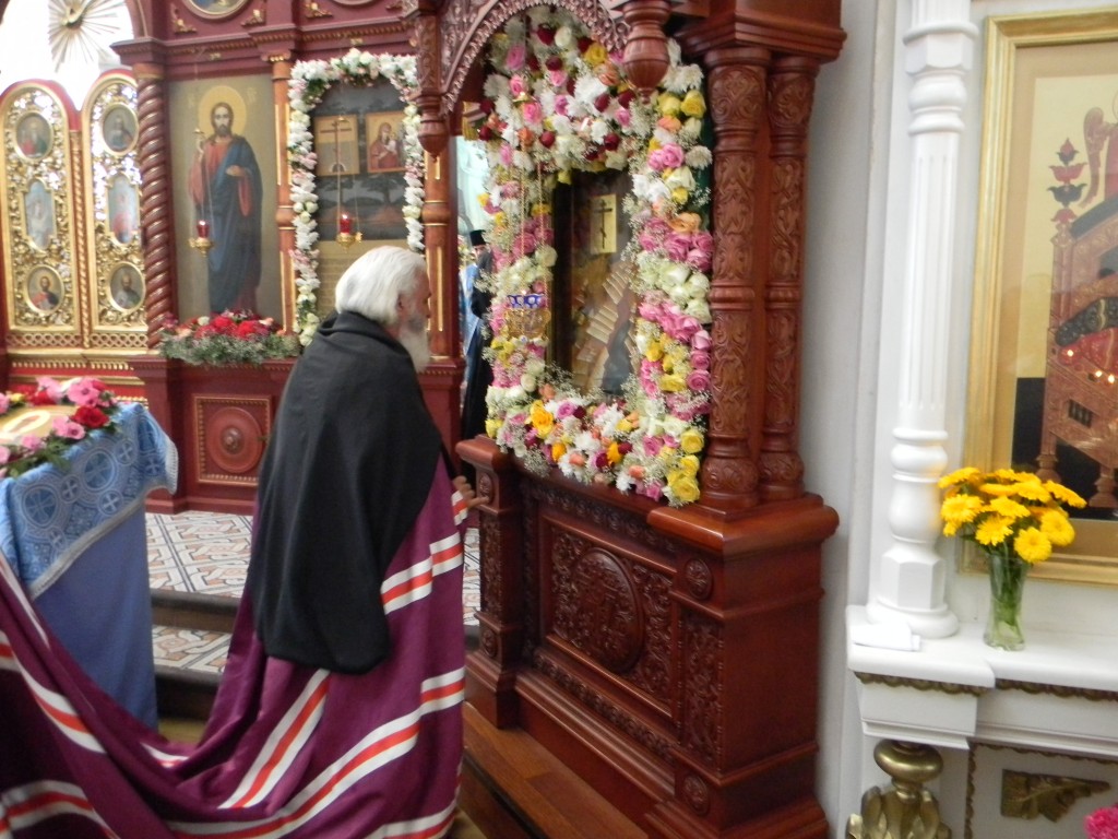 Всенощную предварял водосвятный молебен с акафистом. Украшенный цветами храм был заполнен множеством православных ржевитян, присутствовали представители Администрации Ржевского района, паломники, гости, и все молились перед образом Пресвятой Богородицы. Благоговейно прикладываясь к украшенной цветами праздничной иконе, люди просили у Царицы Небесной спасения от бед и заступничества.