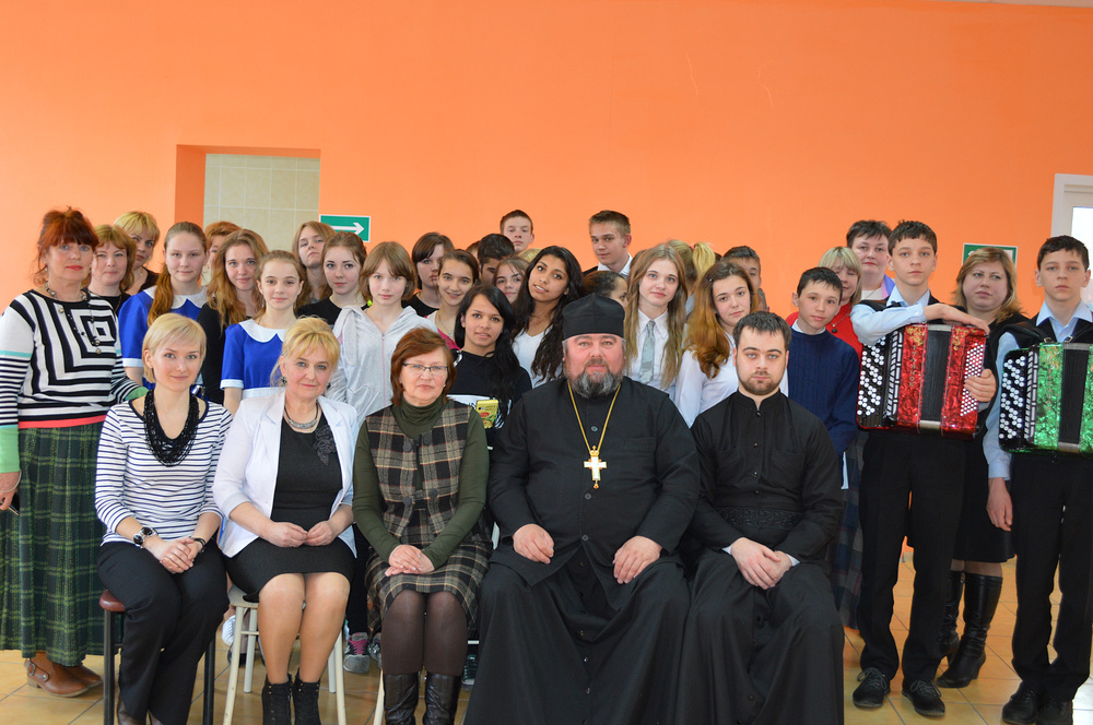 Батюшка также призвал ребят к тому, чтобы они никогда не забывали, что они одна семья и во всем поддерживали друг друга, старались хорошо учиться, чтобы в дальнейшем стать достойными членами нашего общества. В подарок Детскому дому отец Андрей передал православные книги. Ребята тоже приготовили своему духовнику подарок, фотографию Иово-Тихонского храма украшенную квиллингом. Затем все вместе смотрели мини концерт, который показал гости учащиеся и преподаватели Андреапольской Детской школы Искусств. Хозяева в долгу не остались, предложили гостям свое мини выступление. В зале в этот день царила добрая, по-домашнему уютная атмосфера. По окончании выступлений продолжили общение, и душевные беседы за чаем. Ребята подарили гостям на память сувениры, сделанные своими руками, пасхальное яичко в корзиночке. Расставались тепло по-родственному, хозяева благодарили за сладкий стол и устроенный праздник. Гости благодарили хозяев за гостеприимство и теплый прием.