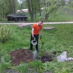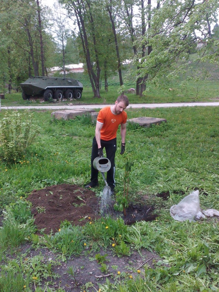 В год 70-летия Великой Победы не стоит забывать и о многих тысячах воинов, погибших в мирное время вдали от своей Родины. 15 мая ребята из числа православной молодежи — Даниил Воскресенский, Андрей Магда, Даниил Куприянов, Кристина Черноземцева — были заняты благоукрашением памятника войнам- интернационалистам на улице Марата — посадили шесть каштанов и один дуб.