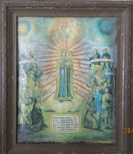 Достали книгу с описанием чудотворных икон Богородичных. Да, найдена икона Божией Матери, именумая «Всех скорбящих радосте» с предстоящими. Отнесла в храм, показала батюшке. Он положил ее на престол во время служения Литургии. Сейчас занимает свое место в домашнем иконостасе.