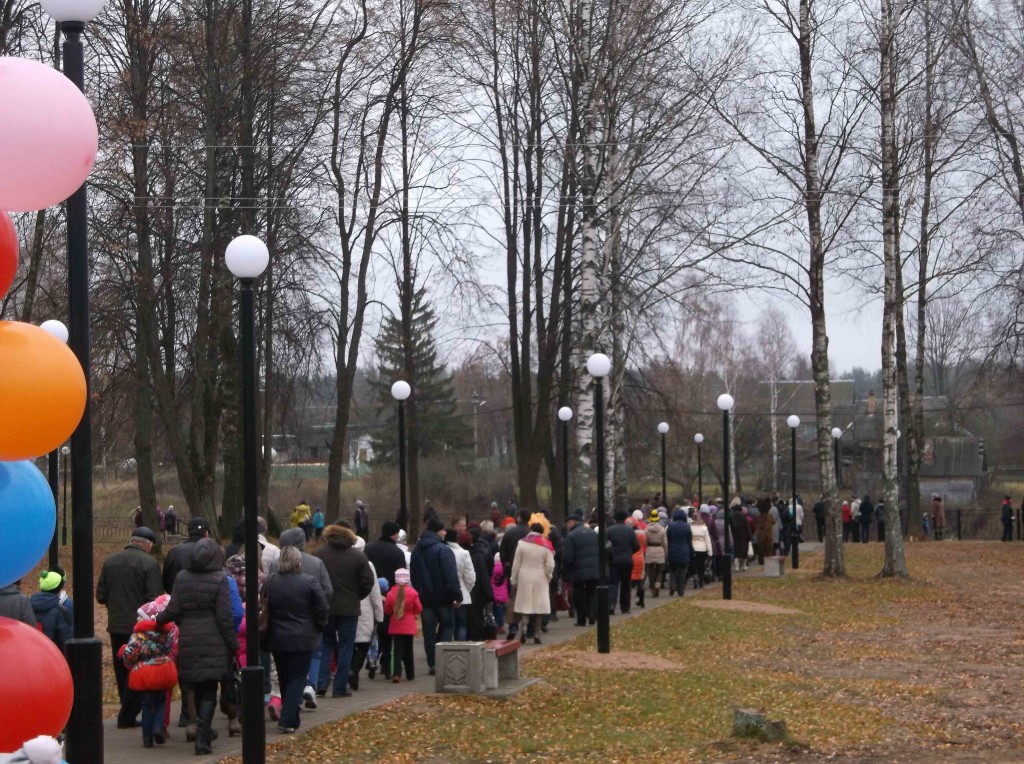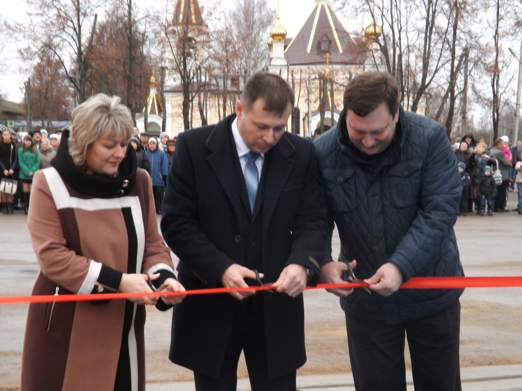 Этого события ждали, и поэтому на площади собралось много людей, в том числе гостей – представителей Правительства области, спонсоров. После традиционного разрезания красной ленточки глава района Ткачёв А.В. предложил присутствующим пройтись по дорожкам, посидеть на лавочках.