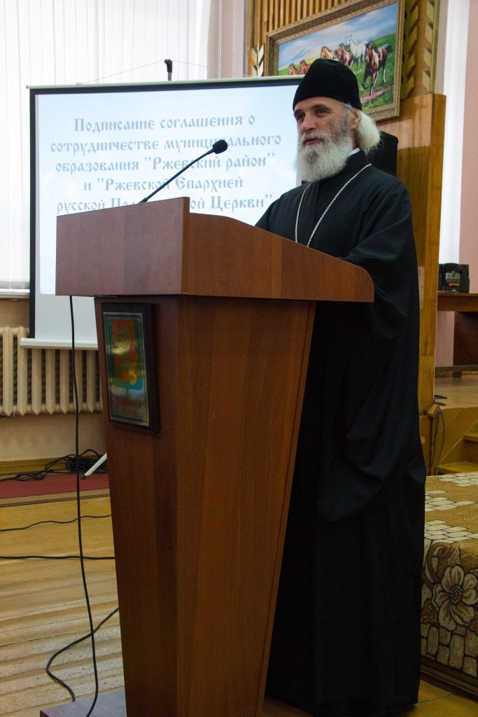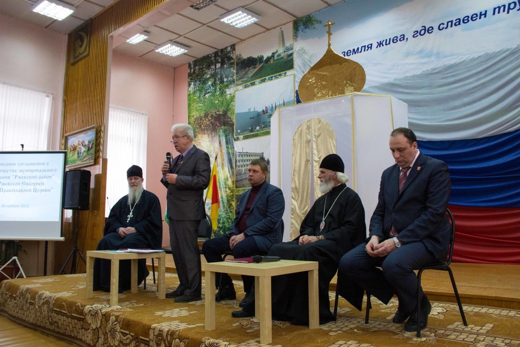Торжественное подписание Соглашения о сотрудничестве муниципального образования Тверской области «Ржевский район» и религиозной организации «Ржевская епархия Русской Православной Церкви (Московский Патриархат)» состоялось 26 ноября 2015 года в здании администрации Ржевского района.