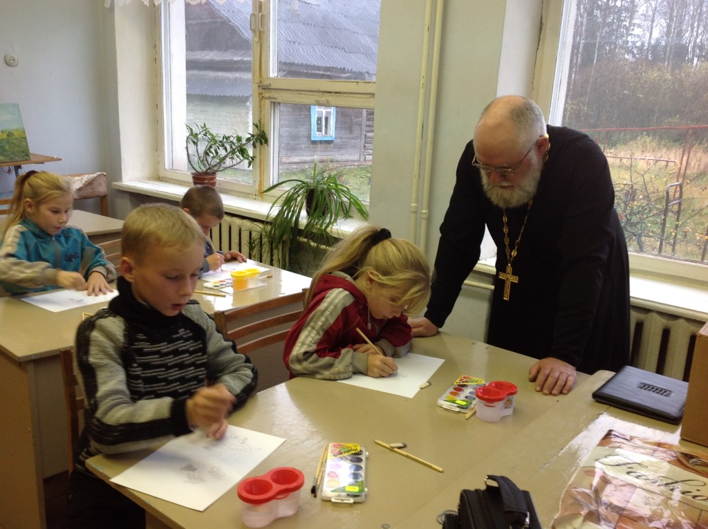Так и начинали мы, с детей, как с более восприимчивых ко всему новому, любопытных, не обращающих внимания на «взрослые» трудности жизни. Сейчас уже всем понятен принцип: умеешь играть в футбол – начинай с детьми гонять в футбол после уроков. Ну, не в футбол, так в волейбол и т. п. Я умел рисовать, и стал с ними рисовать, мне это разрешали даже не только после, но во время уроков, так как учителя рисования в нашей школе не было. Те, с кем я начинал это рисование, уже давно «разлетелись» из нашей округи: отслужили в армии, работают, семьи имеют, некоторые и своих детей. Они, за редким исключением, настоящими, постоянными прихожанами не стали, но при встрече не проходят мимо, а с улыбкой здороваясь, делятся новостями из своей новой, взрослой жизни. Спрашиваешь — в церкви бывают, там, где сейчас живут, и деток своих окрестили…