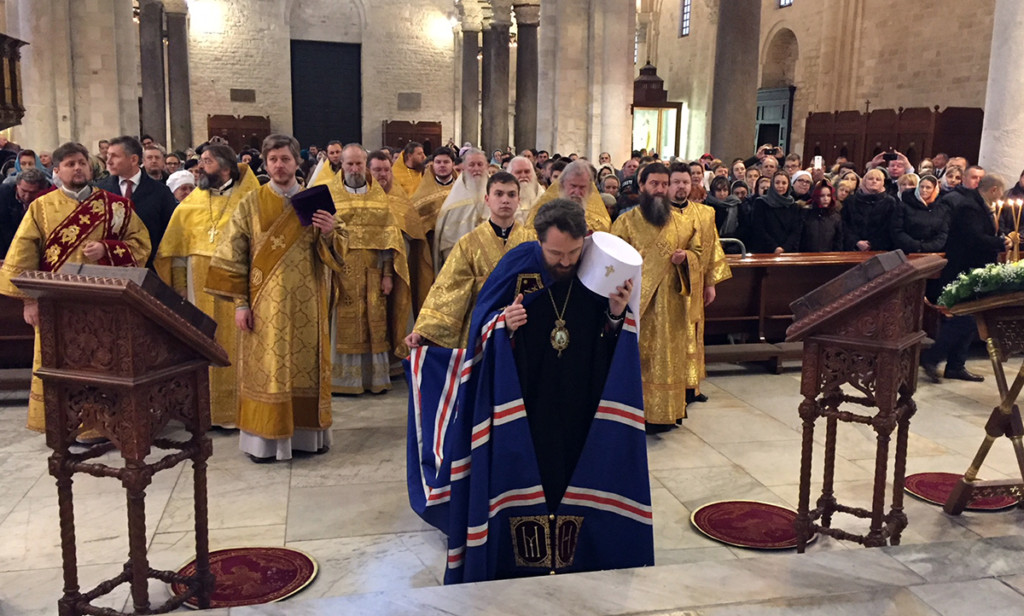 На богослужении присутствовали архиепископ Бари-Битонто Франческо Какуччи, приор доминиканской общины святителя Николая священник Джованни Дистанте и сотрудник Папского совета по содействию христианскому единству священник Иакинф Дестивель.