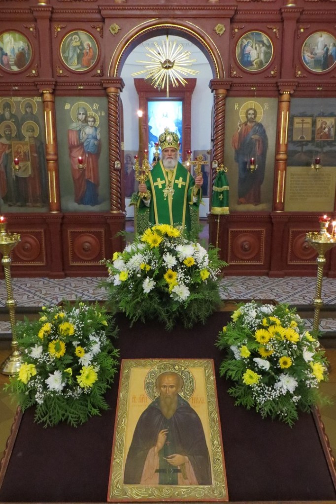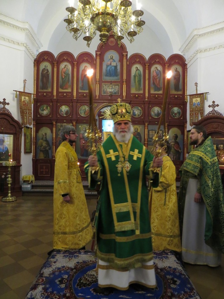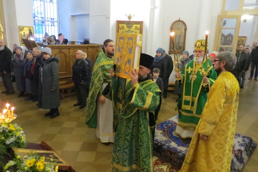 Епископ Ржевский и Торопецкий Адриан совершил Божественную литургию в Оковецком кафедральном соборе, один из престолов которого освящен в честь прп. Нила Столобенского.