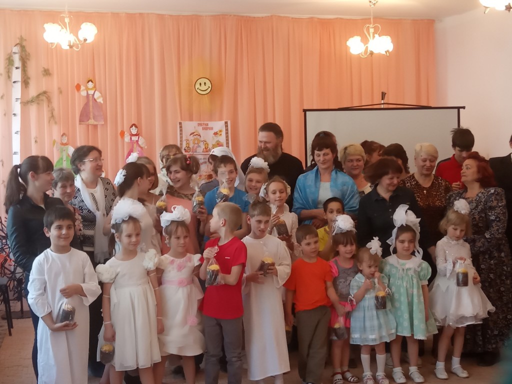 30 апреля в Реабилитационном Центре для несовершеннолетних состоялся праздник, посвященный Светлому Христову Воскресению. Среди гостей были священник храма Новомученников и исповедников Российских Георгий Левчук, представители сестричества во имя св. прав. княгини Елисаветы Фёдоровны, завуч ВШ Оковецкого собора Киреенко Галина Николаевна, родители детей. Праздник подготовили воспитатели Центра Иванова Галина Юрьевна и Баранова Нина Олеговна. Дети читали стихи про праздник Пасхи, исполняли добрые пасхальные песни, девочки станцевали «Танец Ангелов». Галина Юрьевна познакомила всех присутствующих с русскими традициями встречи и проведения Великого Праздника. Иерей Георгий тепло поздравил детишек и взрослых с Пасхой Христовой и подарил всем ребятам по пасхальному куличу. От Воскресной школы кафедрального собора со словами приветствия и поздравления выступила Киреенко Г.Н. и передала детям Центра пирожные в виде забавных зверюшек и пригласила всех посетить в эти пасхальные дни Оковецкий собор. Добрый праздник в стенах Центра это возможность прикоснуться к вечному, хорошему, радостному Событию в жизни человечества – Воскресению Господа нашего Иисуса Христа.