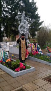 После панихиды в Бахмутово прот. Валентин Сергиенко отслужил еще одну панихиду у обелиска в Роще памяти (вблизи Бахмутово) двух юных разведчиц из села Воскресенского, погибших в страшном 1942-м году.