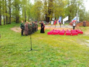 8 мая с деревне Холмец Оленинского района состоялось торжественное захоронение останков солдат, найденных поисковиками отряда «Поколение «в местных лесах за прошедший год. Иерей Александр Колосов совершил панихиду по павшим воинам.