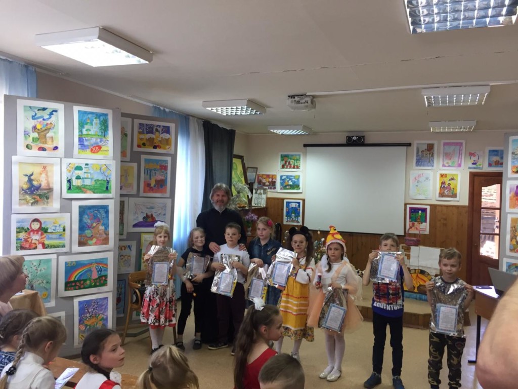 18 мая в воскресной школе кафедрального собора прошло необычное занятие для самых младших учеников под названием «Пасхальное путешествие». Для начала ученики группы Галины Николаевны показали всем сказку «Курочкин подарок». Ну, а потом все отправились путешествовать! Ребята стали «пассажирами» трех вагончиков Пасхального поезда. В каждом вагончике был вагоновожатый (взрослый). «Поезд» должен был пройти четыре «станции» — Храм, Игровую, Интеллектуальную, Спортивную. На каждой станции пассажиров встречали «станционные смотрители» — батюшка Сергий, Юлия Константиновна, Александр Петрович с папами Артёмом и Денисом, Галина Николаевна. На каждой станции ребята должны были выполнить задания, соответствующие названию станции. За отлично прошедшие испытания команда «пассажиров» получала баллы. На всех станциях было интересно и весело. После успешно пройденного маршрута все «вагончики» собрались в зале Воскресной школы, где подвели итоги Пасхального путешествия. Победила дружба! В завершение праздника отец Сергий вручил ребятам, участвовавшим в городском конкурсе «Пасхальная открытка» благодарственные письма и подарки. И всех ждал «вагон-ресторан» (трапезная собора), где заботливые мамы приготовили чаепитие с вкусным тортом, что испекла Любовь Викторовна. После чая все дети побежали на спортивную станцию к Александру Петровичу развивать свою ловкость, глазомер и меткость.