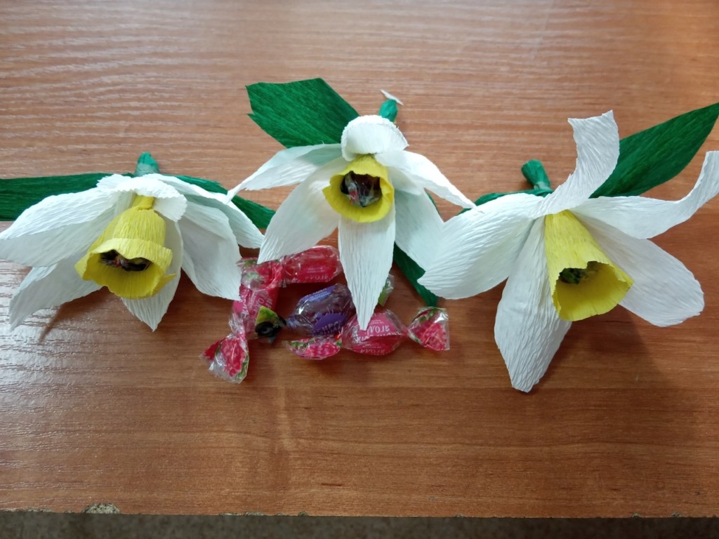 Преподаватель Дома детского творчества Чайка Анна Викторовна провела для детей и родителей Воскресной школы кафедрального собора мастер-класс по изготовлению белых цветов на одноимённую городскую благотворительную акцию, которая пройдёт 1 июня на Советской площади. Девочки и мамы потрудились хорошо – целая корзинка «вкусных» цветов была подготовлена для волонтёров акции.