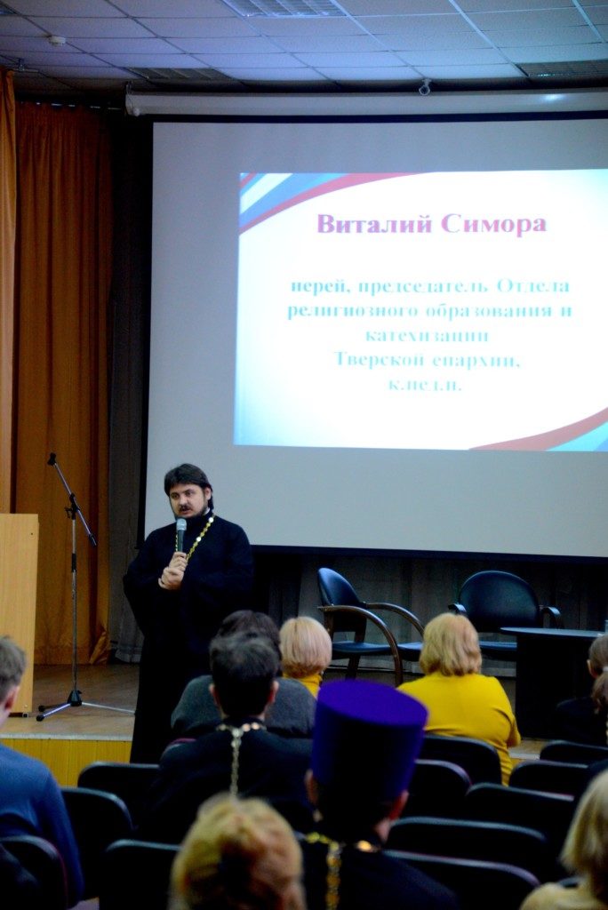 С приветственными словами к участникам семинара обратились и.о. директора ГБОУ ДПО ТОИУУ Моторнова И.А., председатель ОРОиК Тверской епархии иерей Виталий Симора, председатель ОРОиК Ржевской епархии Меркурьева Т.В. и председатель ОРОиКБежецкой епархии иерей Виктор Внуцких.