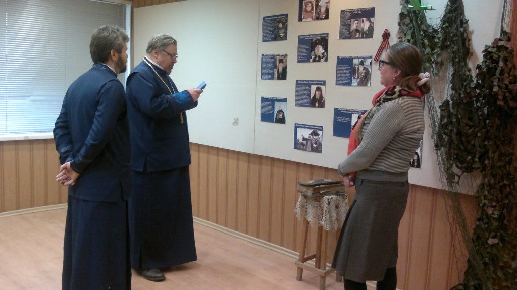 Епархиальный выставочный зал посетили гости из Зубцовского благочиния отец Александр (Федосеев) с помощником Александром и отцом Сергием. Гостям была показана немецкая хроника и видео, посвященное открытию монумента русскому солдату. Отец Александр (Федосеев) рассматривая фотографии на стендах экспозиции увидел родственника среди героев Великой Отечественной войны, чем был приятно удивлен. Немного рассказал о нём и сделал фотографии стенда для сыновей героя, которые живут в наше время и служат Господу. Так же на стендах среди героев Великой Отечественной войны отец Александр (Федосеев) увидел своего духовного наставника, что тоже отметил. Отец Александр (Федосеев) подарил епархиальному выставочному залу, написанную им книгу «Ржев под покровом Богородицы». Гости остались под приятным впечатлением от выставки.