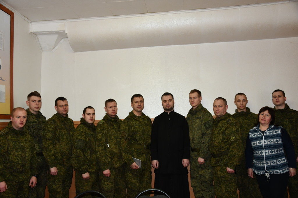 В преддверии Дня защитника Отечества помощник Андреапольского благочинного по молодежной работе иерей Илья Копач встретился с военнослужащими войсковой части дислоцирующейся на территории Андреапольского муниципального округа. Отец Илья поблагодарил личный состав за тот нелегкий труд, который они несут на благо Отечества, охраняя рубежи нашей Родины, мирную жизнь и спокойствие граждан. Поздравил присутствующих с наступающим праздником Днем защитника Отечества, пожелал всем здоровья, терпения, смирения, любви и взаимопонимания в семьях, счастья и добра. В подарок каждому батюшка вручил книгу святителя Игнатия Брянчанинова «О православии — О христианстве — О крестоношении».