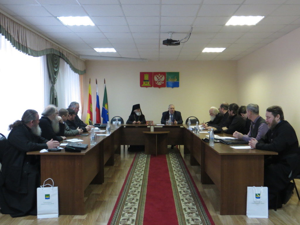 Февральское заседание Епархиального совета прошло в администрации Андреапольского района. Заседание началось с приветственных слов Главы Андреапольского района Николая Николаевича Баранник. На совещании одним из основных вопросов было прошение на рассмотрение возможности строительства храма при колледже имени Ивана Ковалёва города Западная Двина. Прошение и эскиз храма в честь святителя Митрофана, епископа Воронежского, представил директор колледжа Андрей Иванович Ковалёв. Члены епархиального совета высказали своё мнение, задали конструктивные вопросы. В том числе Андрей Иванович рассказал, что данная инициатива исходит от сотрудников учебного заведения и получила поддержку среди учащихся и их родителей. Решение поддержать проект высказано всеми членами епархиального совета. Также на заседании были рассмотрены актуальные вопросы общецерковной жизни.