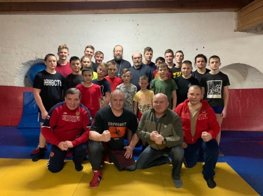 В башне монастырской крепости, в которой базируется одноименный клуб «Пересвет», возглавляемый протоиереем Димитрием Болтрукевичем прошла тренировка команд.