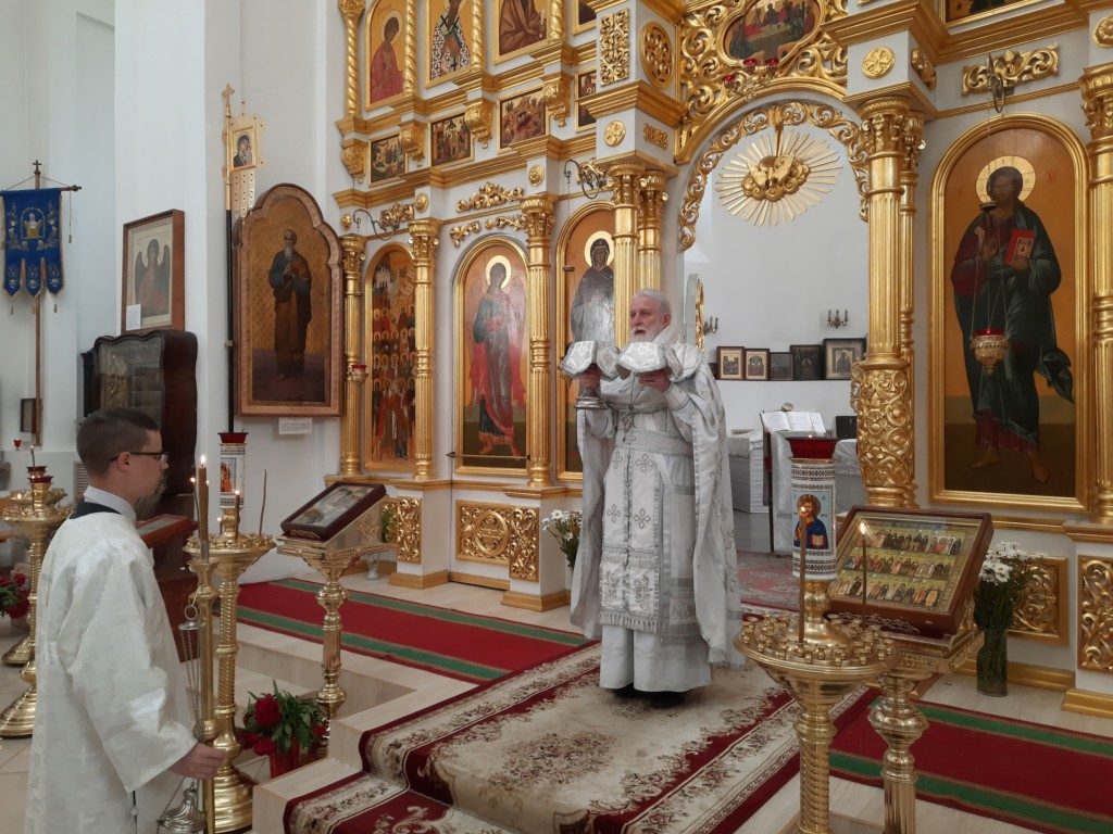 Литургия сегодня шла очень торжественно и тепло, что давало сознание надежды, уверенности, защищенности от всего плохого. В проповеди настоятель Вознесенского храма отец Константин говорил о том, что значит для православного человека вера в загробную жизнь, именно жизнь, полную не безделья, а радости и духовной деятельности; как надо сейчас, в земной жизни, не потерять эту готовность встречи с Господом, этого «Бесценного сокровища». И сам священник, в белых одеждах, с белыми волосами и белой бородой, был воплощением чистой веры в бессмертие людей.