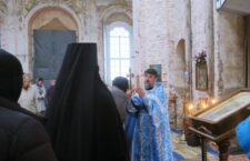 20 лет Покровский храм был закрыт. И вот сегодня, несмотря на холодную погоду, из-за которой и в храме было холодно (Покровский ведь — летний храм), на службу пришли прихожане — торопчане и гости города. На богослужении молились преподаватели и учащиеся гимназии имени Патриарха Тихона. Было многолюдно, гостеприимно — от того и теплее к концу службы стало.