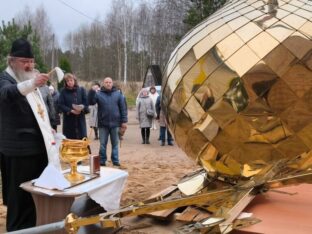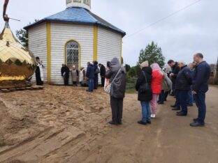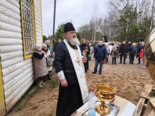 После чина освящения отец Валерий обратился к собравшимся на молитву со словом назидания, в котором также поблагодарил всех, кто помогает в строительстве храма и пожелал всем помощи Божией в богоугодном деле.