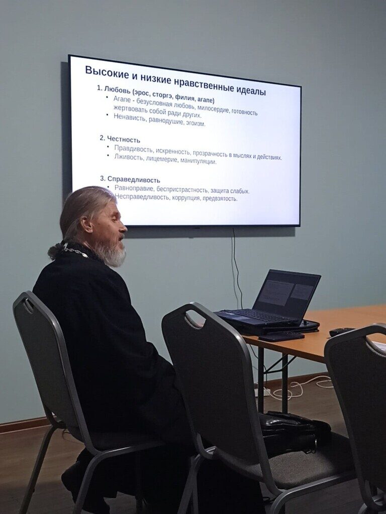 27 ноября 2025 года в здании Епархиального управления прошла вторая встреча из цикла «Традиционные ценности. Возвращение смыслов» — беседа на тему «Высокие нравственные идеалы. Достоинство» для педагогов образовательных организаций Ржевского муниципального округа.