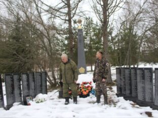 Колонна неспешно двигалась от одного воинского захоронения к другому, останавливаясь для возложения венков. Некоторые памятники уже знакомы, к другим дорога привела впервые. Вот скромное захоронение в Оленинском районе: на мемориальных плитах, развернутых словно книга, — всего 13 фамилий жителей окрестных деревень. Их согнали каратели копать траншеи, а потом многих расстреляли тут же…