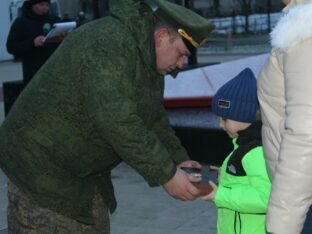 В ходе митинга состоялась церемония передачи государственных наград семьям погибших военнослужащих. Участники мероприятия, по благословению отца Николая, почтили минутой молчания и молитвенной памятью всех защитников Отечества, отдавших жизни за мир и свободу.