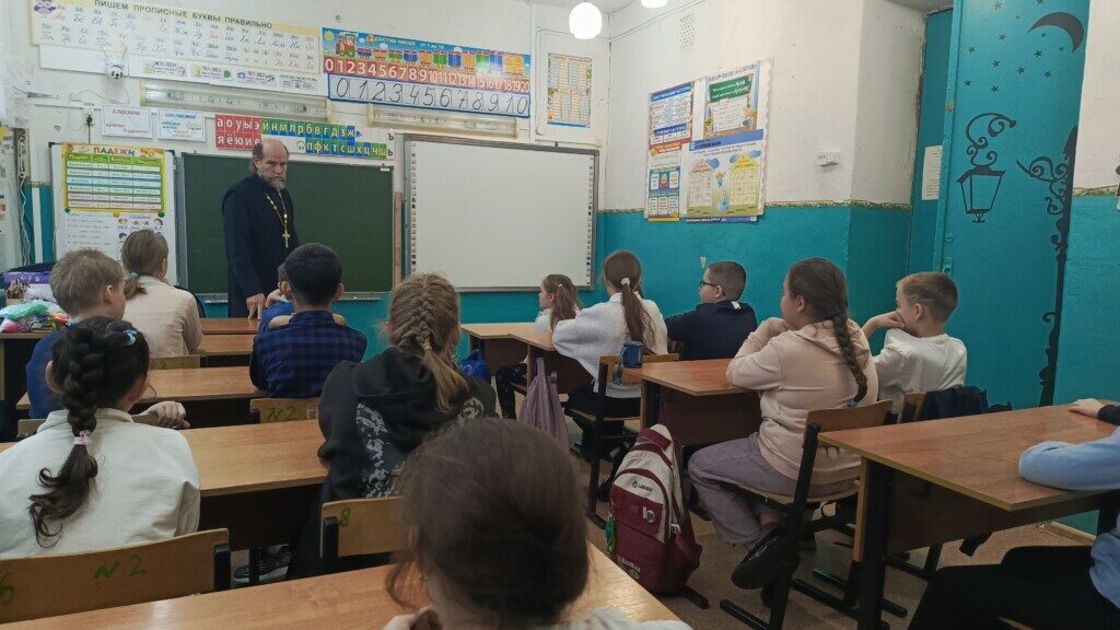 Встреча с батюшкой прошла в доступной и интересной форме, школьники с интересом слушали рассказ священника, задавали вопросы и обсуждали услышанное.