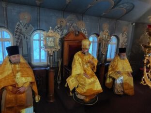Его Преосвященству сослужили благочинный города Ржева протоиерей Валерий Макаров, иерей Василий Степаненков и иерей Пётр Левчук.