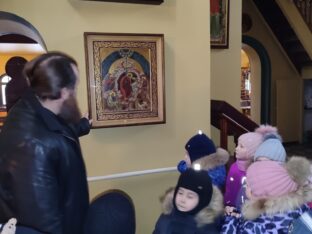 Детей встретил священник иерей Пётр Левчук. Он рассказал ребятам о празднике Рождества Христова, о том, где родился Иисус Христос, кто первым узнал о рождении Спасителя, о вифлеемской звезде, что указывала дорогу к пещерке трём мудрецам с Востока. В храме ребята с интересом рассматривали внутреннее убранство, иконы, горящие свечи.