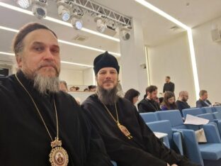 На круглом столе «Взаимодействие древлехранителей и представителей волонтёрских организаций» Владыка выступил с докладом «Попечение о старинных храмах в Ржевской епархии.»