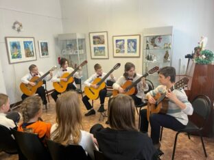Праздничную атмосферу создало прекрасное выступление ансамбля гитаристов Детской школы искусств под руководством Натальи Крючковой. В их исполнении прозвучала «Рождественская история» Михаила Муравьева, напомнив всем присутствующим о тихой радости и чуде Рождества Христова.