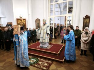 15 февраля 2026 года, в Неделю мясопустную, о Страшном Суде, праздник Сретения Господа Бога и Спаса нашего Иисуса Христа, епископ Ржевский и Торопецкий Силуан совершил Божественную литургию в Оковецком кафедральном соборе города Ржева.