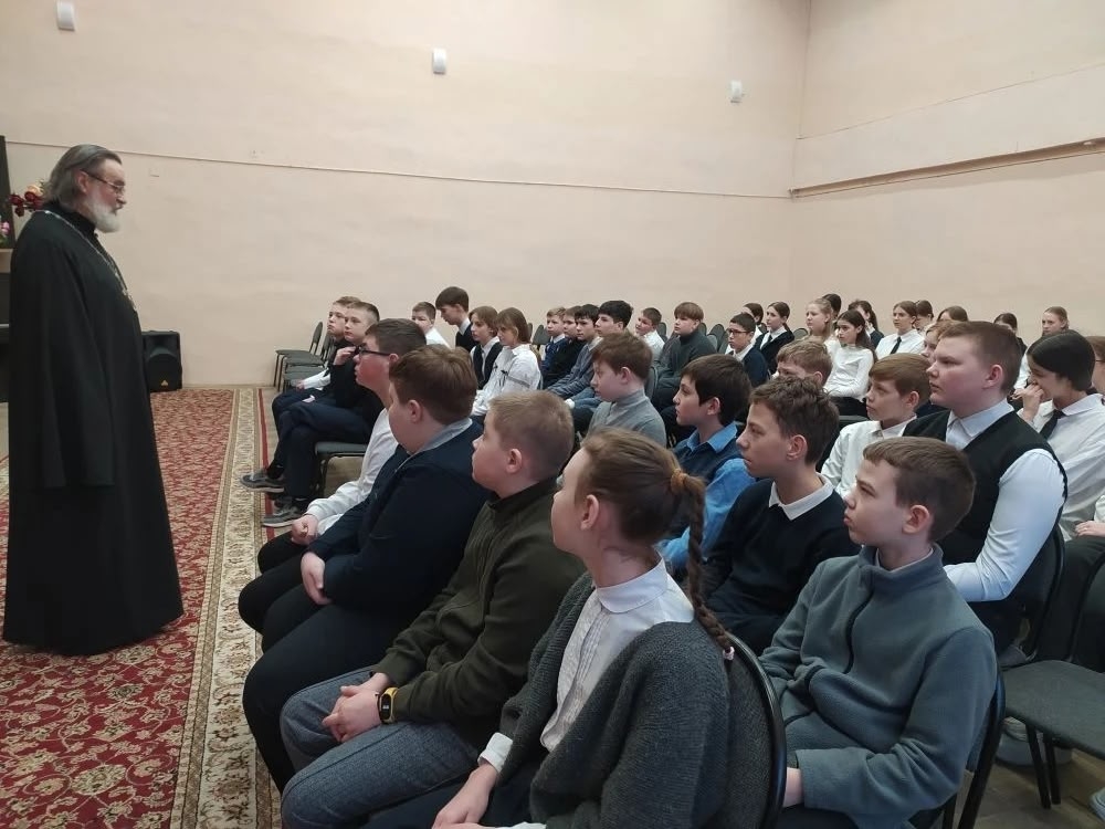 16 февраля 2026 года в СОШ № 5 города Нелидово состоялась встреча протоиерея Сергия Малышева со школьниками.