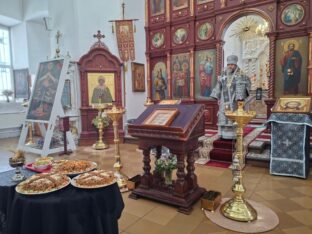 По заамвонной молитве владыка Силуан совершил молебное пение великомученику Феодору Тирону и, следуя древней церковной традиции, освятил коливо – постное блюдо в память о чуде святого.