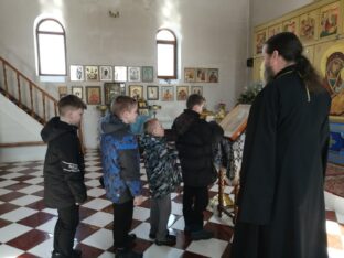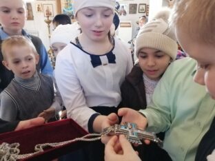 Школьники узнали традиции убранства храма в этот пост, о священнических одеждах и атрибутах. Очень заинтересовали детей облачения и кресты, которые батюшка носит поверх рясы, меняя их в соответствии с событиями Церкви. Беседа проходила в канун Родительской поминальной субботы, поэтому ребята поставили свечи возле Распятия Иисуса Христа, помянув своих ушедших в мир иной родственников. Спасибо отцу Валентину за интересный подробный рассказ о важных событиях православных христиан.