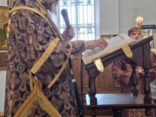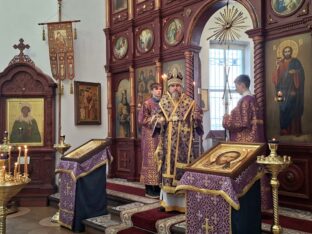 Его Преосвященству сослужили настоятель собора иерей Сергий Макаров и иерей Владислав Феценко.