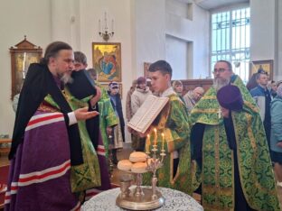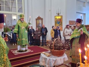 Его преосвященству сослужили настоятель собора иерей Сергий Макаров и иерей Владислав Феценко.