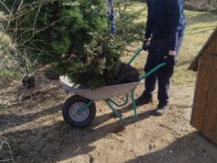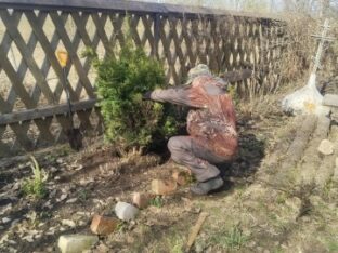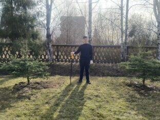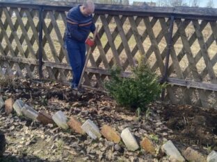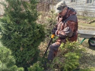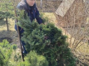 В храме Новомучеников и Исповедников Российских посёлка Оленино продолжается благоустройство прихрамовой территории, начатое осенью пошлого года. 3 апреля 2026 года на западной границе храмового дворика были посажены туи, а на южной — декоративные ели. Деревья пересадили от церковного колодца, где им стало уже довольно тесно.