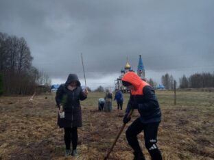 В Вербное воскресенье 5 апреля 2026 года благочинный Зубцовского округа иерей Александр Фёдоров совершил Божественную литургию в Знаменском храме в Щеколдино. После небольшого отдыха с чаепитием и беседой весь приход принял участие в закладке на территории храма кедровой рощи.
