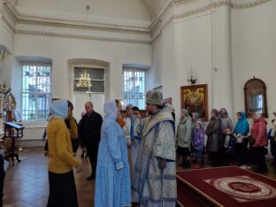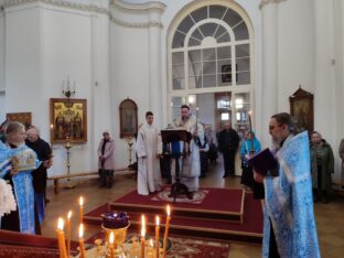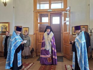 Его преосвященству сослужили настоятель собора иерей Сергий Макаров и иерей Владислав Феценко.