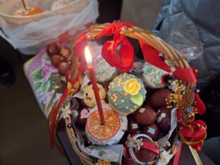 Желающих освятить пасхальные лакомства было огромное количество, лавочки вновь и вновь заполнялись снедью.