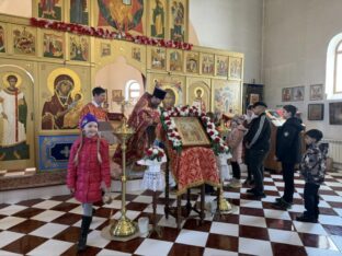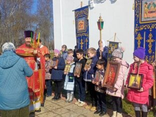 На богослужении были школьники младших классов Итомлинской школы. Некоторые из них причастились Святых Христовых Таин.